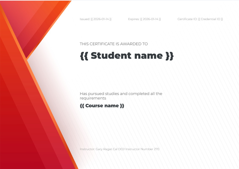 Our instructors are certified by the California Department of Justice to teach the CA CCW Permit course.